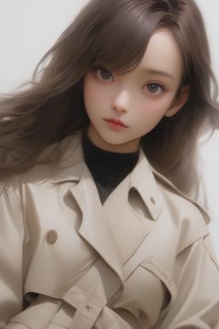 breathtaking chinese girl, Loewe oversized leather trench coat with a belted waist,upper body, . award-winning, professional, highly detailed