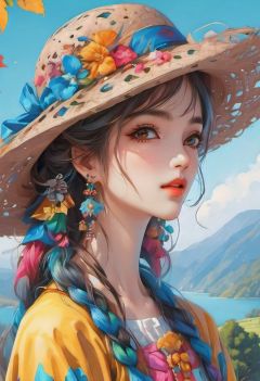 Best quality,1girl,colorfull,upper body, extremely detailed details, amazing scenery,hat,