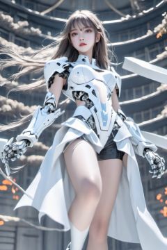 1 girl, ((((full body)))), wearing this white gold mecha,