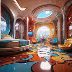 best quality,  HDR, sharp detailed, surespace, a colorful room with futuristic stuff,