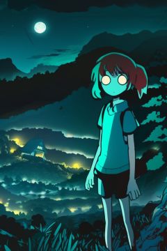 1 girl, look at viewer, (anime:1.2), nature, landscape, night light, horror style