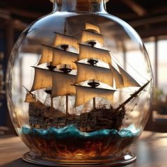 The galleon is inside a glass bottle filled with water, photorealistic,  masterpiece,  surrealistic, details, 8k <lora:copax_galleon_xl:1>