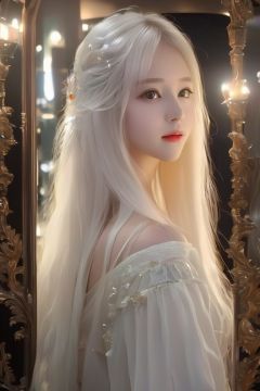 best quality,masterpiece,highres,cg,1girl,Photograph,high resolution,8k,mirror selfie,photo of a petite pretty 24 year-old woman with white long hair,anime art,dark,Gothic,Dingdall effect