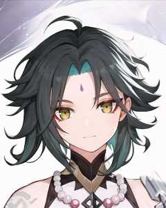 ((masterpiece)), ((best quality)), ultra detailed,((illustration)), dynamic angle, detailed light, (delicate eyes),<lora:Genshin_Xiao_AP_v2:0.65>, 1boy, male focus, head, clothing, necklace, tattoo, (forehead:0.8), ahoge, jewelry, nature, simple background,