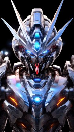 Gundam, solo, looking_at_viewer, blue_eyes, upper_body, no_humans, glowing, robot, black_background, mecha, glowing_eyes, science_fiction, straight-on,photo,8k,intricate,highly detailed,majestic,digital photography,broken glass,(masterpiece, sidelighting, finely detailed beautiful eyes:1.2),hdr,realistic,high definition,<lora:SDXL_gundam_Transparent:0.7>,