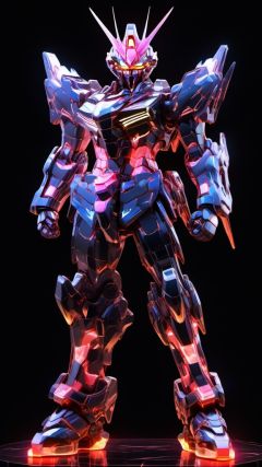 Gundam, solo, looking_at_viewer, standing, no_humans, glowing, robot, black_background, mecha, glowing_eyes, clenched_hands, science_fiction, straight-on, v-fin,photo,8k,intricate,highly detailed,majestic,digital photography,broken glass,(masterpiece, sidelighting, finely detailed beautiful eyes:1.2),hdr,realistic,high definition,<lora:SDXL_gundam_Transparent:0.7>,