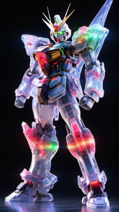 Gundam, solo, green_eyes, standing, no_humans, glowing, robot, mecha, glowing_eyes, clenched_hands, science_fiction, v-fin, mobile_suit,photo,8k,intricate,highly detailed,majestic,digital photography,broken glass,(masterpiece, sidelighting, finely detailed beautiful eyes:1.2),hdr,realistic,high definition,<lora:SDXL_gundam_Transparent:0.7>,