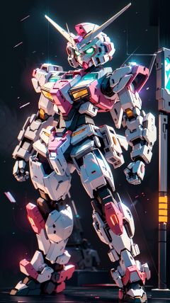 Gundam,solo,green_eyes,standing,no_humans,glowing,robot,mecha,glowing_eyes,clenched_hands,science_fiction,looking_ahead,v-fin,mobile_suit,cinematic lighting,strong contrast,high level of detail,Best quality,masterpiece,White background,<lora:gundam_Transparent:0.7>,