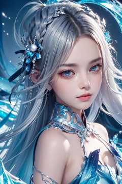 (masterpiece, top quality, best quality, official art, beautiful and aesthetic:1.2), (1girl:1.2), cute, extreme detailed,(abstract:1.4, fractal art:1.3),(silver_hair:1.1), fate \(series\), colorful,highest detailed, fire, ice, lightning, (splash_art:1.2), jewelry:1.4, hanfu, , scenery, ink,