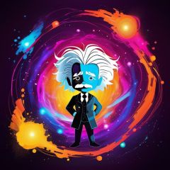 Circle, (dreamlikeart:1.3),splash art portrait painting (chibi albert einstein:1.3), electrical aura, splashart, superhero , powerful attack, dynamic pose, dynamic angle,movement, colorful highly detaild of universe of background, quantum fracture, science concept, maths symbol, equations write, nerd vibes, style futuristic ciberpunk, modern technology,
