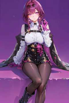 masterpiece, best quality, 1girl, official, purple eyes,  <lora:StarRail_Kafka_AP_v4:0.95>,black footwear, black pantyhose, purple gloves,simple background, pink and purple background, white background, purple theme,
