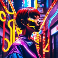(Masterpiece:1.2), ((intricate details)), full body, wide shot, cover art, chaos, , 1girl, japanese girl, short hair, black hair, bangs, hair on forehead, high quality, (red, blue, yellow, purp neon lights), ((front view)), face dripping, clothes dripping, ink dripping, (addnet weight 1:1.0), (double exposure), ink scenery