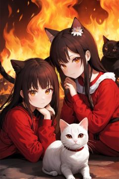 2_girls,cats,fire,