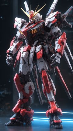 BJ_Gundam_SDXL,solo,standing,no_humans,glowing,robot,mecha,clenched_hands,science_fiction,looking_ahead,3d model,8k,intricate,highly detailed,masterpiece,sidelighting,hdr,high definition,<lora:SDXL_Gundam_v2:0.7>,