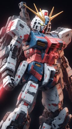 BJ_Gundam_SDXL,solo,holding,weapon,holding_weapon,gun,no_humans,robot,holding_gun,mecha,glowing_eyes,science_fiction,v-fin,energy_gun,mobile_suit,beam_rifle,3d model,8k,intricate,highly detailed,masterpiece,sidelighting,hdr,high definition,<lora:SDXL_Gundam_v2:0.7>,