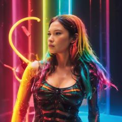 aw0k magnstyle, (best quality) , (masterpiece) , RAW photo, Adroit Filipino woman, (((Robotic Arms))), ((Fur Scarf)), soft focus, Movie still, Hopeless, 80mm, Polychromatic, full of color, <lora:magnetic:0.6> <lora:straightsyle:0.6> <lora:geometrystyle:0.8>