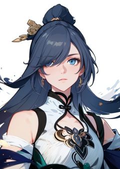 (masterpiece:1.3),(the best quality:1.2),(super fine illustrations:1.2),(Masterpiece),high quality,high detail,(white background:1.2),looking at viewer,(SOLO:1.4),outline,simple background, <lora:yunmo:0.8> fu_hua, hair_over_one_eye, chinese_clothes, blue_eyes, solo
