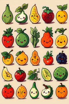 fruit,orange_\(fruit\),tomato,food,leaf,gradient,strawberry,gradient_background,bird,no_humans,fruit_on_head,apple,blueberry,grapes,mandarin_orange,food_focus,watermelon