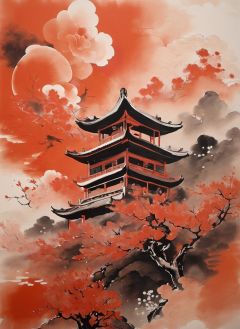 In the style of traditional Chinese painting, using vermillion pigment, there is an explosion depicted in a radial pattern from the center. The explosion is portrayed with bold brushstrokes and vibrant colors, capturing the intensity and force of the blast. The vermillion pigment is applied in a way that creates a textured, grainy effect, adding depth and a sense of granular particles to the artwork. The composition also incorporates the use of ink wash, with subtle washes of black ink blending with the vermillion pigment, creating a harmonious and dynamic contrast. The combination of the vermillion pigment and ink wash techniques adds a sense of traditional Chinese painting aesthetics to the overall piece, enhancing its visual impact.