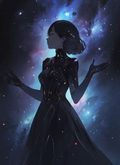 masterpiece, best quality, ultra high res, (abstract art:1.3), (dark art:1.3), deep shadow, dark theme, 1girl, cosmic dress, cosmic beauty, in space, nebula, <lyco:GoodHands-beta2:1.0>, nice hands, perfect hands,