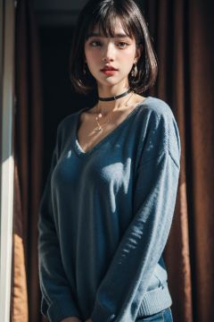masterpiece, best quality, realistic, 8k, official art, cinematic light, ultra high res, 1girl,  standing, day, sunlight, light on face, Cufflink,jewelry ,necklace ,earrings , Curtain bangs, Choker, Edinburgh Castle, -color- lighting<lora:JPfilmColor_Heavy_grain:0.5> <lora:lowra_v10:0.5>,