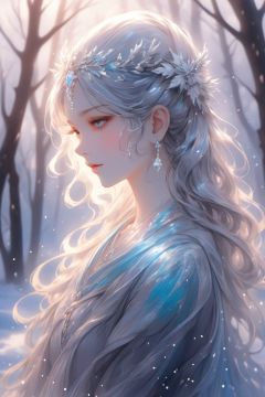 (Need),(tmasterpiece:1.2),(a color:0.5),(Splash ink),(Splash color),((aquarelle)),Clear and sharp,model shoot,(Goddess of winter:1.5),cuteexpression,Elegant gray hair,Delicate face and eyes,Elegant goddess costume,Winter forest background,Colored water,Colorful portraits,watercolor