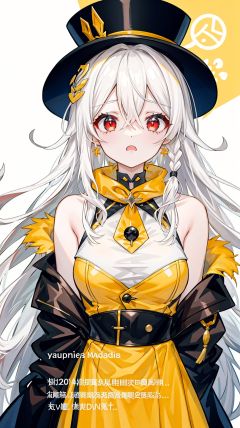 masterpiece,best quality,official art,1girl,cold face,best quality,long (white hair),(mini top hat),detailed red eyes,hair between eyes,braid,french braidoff-shoulder dress,transparent background,noogie,(Yellow lips:1.4),fur vest,age progression,calligraphy brush \(medium\),BREAK White (square:1.4) (borders:0.8), (expressive lettering, lettering art, expressive styles, unique design:1.4), (calligraphy, creative typography:1.1),,fujifilm xf 90mm,breast awe,