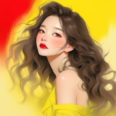 bare shoulder,sexy, cleavage,medium breast, 1 girl,asia lady, portrait, long wavy hair, Wool,simple background,(electric yellow gradient background), (masterpiece,best quality), red lips, cry,niji style