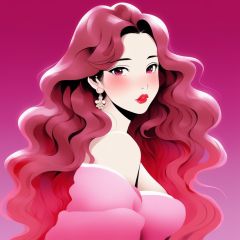 are shoulder,sexy, cleavage,medium breast, 1 girl,asia lady, portrait, long wavy hair, Wool,simple background,(deep pink gradient background), (masterpiece,best quality), red lips, cry,niji style