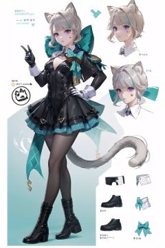 (multiple views:0.3), (sketch:1.25), shy, best quality, graphite \\(medium\\), ske, gradient, rainbow, (note:1.2), Line draft, highres, absurdres, (ultra-detailed:1.1), (illustration:1.1), (infographic:1.2), pajamas, (all clothes configuration:1.15), (solo), perfectly drawn hands, standing, cohesive background, paper, action, (character design:1.1),full body, <lora:lnt-v100-000027:0.85:char>,lnt, 1girl, purple eyes, boots,black pantyhose, animal ears, long hair, black footwear, cat ears, bow, tail, standing, long sleeves, dress, white gloves, grey hair, bangs,<lora:EnvyBetterHands LoCon_beta2 辅助:1>,good hands,nice hands,(beautiful_face), ((intricate_detail)), (revealing clothes:1.2), clear face,((finely_detailed)), fine_fabric_emphasis,((glossy)),