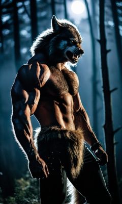 cinematic photo,western fantasy,Transforming werewolf under the full moon,Dynamic and intense metamorphosis,Muscles bulging as bones reshape,Fierce expression reflecting the inner struggle,Shredded clothing caught in the transformation,Moonlit forest backdrop enhancing the atmosphere,Cinematic angle capturing the tension,Dramatic backlight adding depth,Focal length 55mm,aperture f/2.0,ISO 400,shutter speed 1/250.,