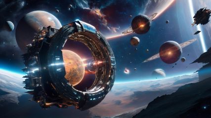 (Magic Universe, Fantasy style: 1.5) (Stunning cosmic background),(detailed spacecraft design),(realistic rendering),(impressive scale and proportions),(future architecture),(attention to scientific precision),(intricate mechanical details),(immersive light and shadow effects),(awe-inspiring vastness), Trends in ArtStation,(on the trend of CGSociety),(space exploration of wonders now),(technological advances that evoke awareness),(very detailed spatial environment),<lora:sdxl_changjing:1>