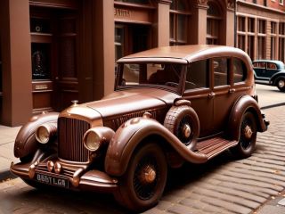 photo, realistic, a chocolate 1920s Bentley car parked on the street, highly detailed,  chocolate