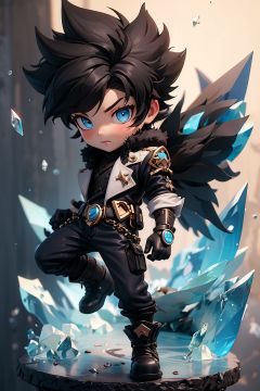 spiked_hair,solo,black_hair,gloves,ice,1boy