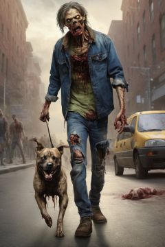 Zombie, dog, realistic, high_resolution, high detail, realism, on street