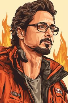Vector art style, 1man, high_resolution, high detail, on fire