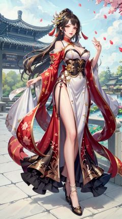 1girl, {an extremely delicate and beautiful},hair spread out,{{sheath dress}},chinese style architecture,game cg,Skirt lift,