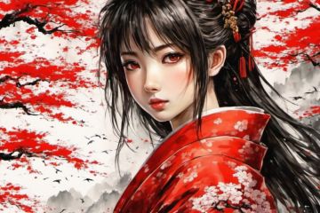 japanese art, 1girl, black and red color, high_resolution, high detail,