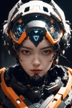 1girl, universe background,explode, medium shot, bokeh, (hdr:1.4), high contrast, (cinematic:0.85), (dark background:1.3), low saturation,cyborg,flat,EpicSky,Cyberpunk Concept,mech,glass,wangqihuiyilu,Colorful portraits,mecha,broken glass,falling,FUJI,Wearing orange astrosuit