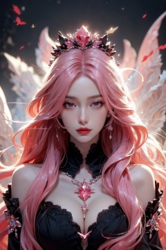 (aerial view,view of city),1girl flying in air,beautiful cute crystal girl in 26 years old, wearing crystal wear, the crystal is evil, black and pink and red glowing crystal, crystal pink hair, the power is every wear, she is evil but cute, the crystal is evil and glowing black and pink and red colors, detailed evil eyes,she has a serious expression and her lips are closed glowing crystal wear, (incredible details, cinematic ultra wide angle, depth of failed, hyper detailed, insane details, hyper realistic, high resolution, cinematic lighting, soft lighting, incredible quality, dynamic shot,,Hair with scenery,baiyueguangya,huliya