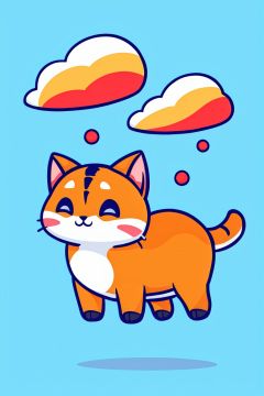 style of Cathleen McAllister, a cat, in clouds, warm colors, simple  background, Illustration, japan, minimalistic, cutestickers