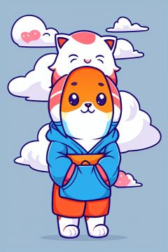 style of Cathleen McAllister, a cute cat, on clouds, cold colors, simple  background, Illustration, japan, minimalistic, cutestickers
