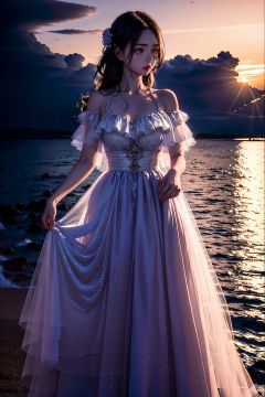 1girl,station,sea,best quality, hyper realism, (ultra high resolution), masterpiece, 8K, RAW Photo,Detail,hunsha,sunset,Sky Fantasy