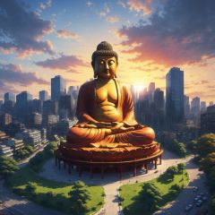 ((a huge Buddha statue in the middle of the city)),