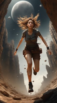 3girl,looking from above,the space,afloat,moons,Running position,Wide-angle lens distortion,rock,Photographic,3D Model,Cinematic,(masterpiece:1.4),Rebellious girl,NVDI,building,A high resolution,ultra - detailed,<lora:SDXL_Alien_garbage:0.7>,