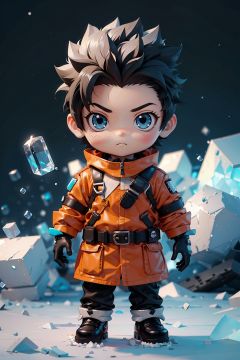 spiked_hair,solo,black_hair,gloves,ice,1boy