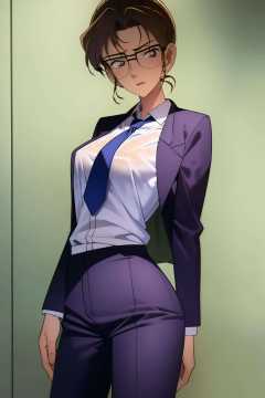 (8k, high_resolution), ((distinct_image)), extremely detailed CG, ((best quality)), (meitantei conan \(style\), detecive conan \(style\), meitantei conan), ((1girl, solo)), (large breasts:1.2),  (wide hip), (abs:0.8), (cowboy shot), (short hair),  ((pants, whie shirt, bule blazer, blue jacket, green necktie:1.2)), ((white shirt:1.2)), slim, slender,  <lora:kisaki-20 (3):1>