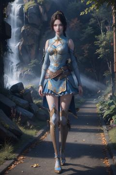 masterpiece,best quality,official art,extremely detailed CG unity 8k wallpaper,1girl, full body, light rays, light particles, waterfall,  <lora:纳兰嫣然:0.55>