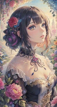 anime,(masterpiece, top quality, best quality, official art, beautiful and aesthetic:1.2),(1girl),upper body,extreme detailed,(fractal art:1.3),colorful,flowers,highest detailed,