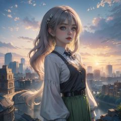 {{masterpiece}},illustration,best quality,extremely detailed CG unity 8k wallpaper,original,high resolution,oversized documents,portrait,{{{{{extremely delicate and beautiful girl}}}}},1girl,solo,messy hair,hair flowing in the wind,blonde hair,very long hair,beautiful detail eyes,jewel eyes,glowing circle pupils,{{golden eyes}},good lighting,{{{{ray tracing}}}},sparkling,{{abandoned building}},{{on ruins}},{{staring at sunset at dusk}},depth of field,profile,